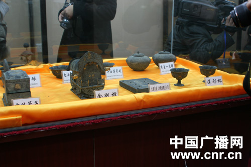 中廣網(wǎng)金鄉(xiāng)12月6日消息(記者 陳佳)下午,第四屆網(wǎng)絡(luò)媒體濟(jì)寧行記者團(tuán)參觀了位于縣城中心的金鄉(xiāng)縣光善寺塔出土的唐代佛教圣物,據(jù)悉,光善寺塔系磚石結(jié)構(gòu),石臺底座,磚砌八角形九層樓閣式建筑,頂為鐵質(zhì)葫蘆型,通高49米,2006年12月7日被山東省人民政府公布為第三批省級重點(diǎn)文物保護(hù)單位。由于歷史悠久等原因,塔內(nèi)墻體和樓梯破損嚴(yán)重,急需進(jìn)行搶救性維修保護(hù)。2010年5月21日在維修塔體至二層半高度時,檢測磚體酥減過程中,發(fā)現(xiàn)磚體松動,取出上部墻面酥減磚體,內(nèi)部墻面出現(xiàn)了一個券頂式壁龕,內(nèi)置包括佛塔、舍利棺在內(nèi)的22件銀質(zhì)文物、舍利一宗,為研究唐代佛教文化和當(dāng)?shù)胤鸾贪l(fā)展史,提供了極為珍貴的實(shí)物資料。