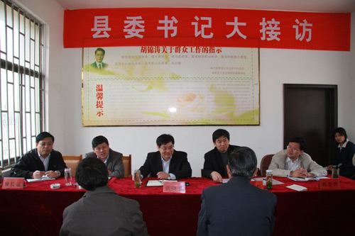 縣委書記與有關(guān)領(lǐng)導(dǎo)正耐心接待群眾來訪