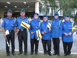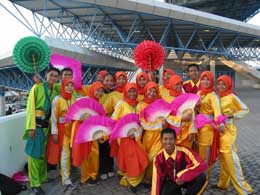 2004年2月23日,準(zhǔn)備參加國慶日慶祝活動(dòng)的青少年在國家體育場(chǎng)合影 |