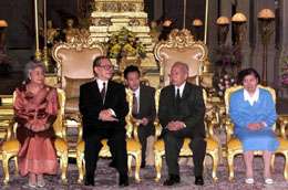 國(guó)家政要:新 國(guó)王諾羅敦·西哈莫尼 (Norodom Sihamoni),2004年10月就任; 首相洪森 (Hun Sen) ,2004年7月任職;國(guó)民議會(huì)議長(zhǎng)諾羅敦·拉那烈 (Norodom Ranarith),2004年7月當(dāng)選;參議院議長(zhǎng)謝辛 (Chea Sim),1999年3月任職!∏皣(guó)王諾羅敦·西哈努克(Norodom Sihanouk),2004年10月7日宣布退位。