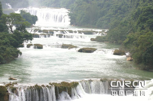 在德天瀑布下游數(shù)公里的河段上,往日里不露聲色的沙屯疊布也盡顯風(fēng)流,引無數(shù)游客駐足觀賞,贊不絕口。