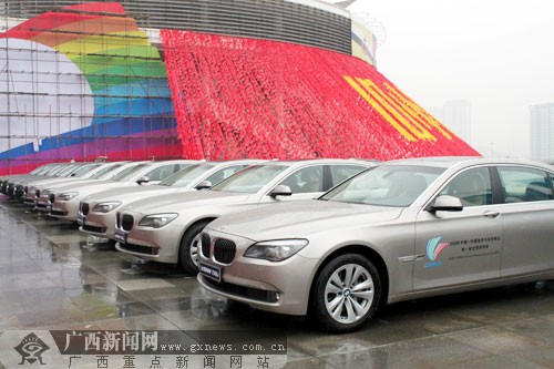 作為第六屆中國(guó)-東盟商務(wù)與投資峰會(huì)指定貴賓接待用車(chē)的11輛BMW 730Li轎車(chē)。(來(lái)源:廣西新聞網(wǎng))