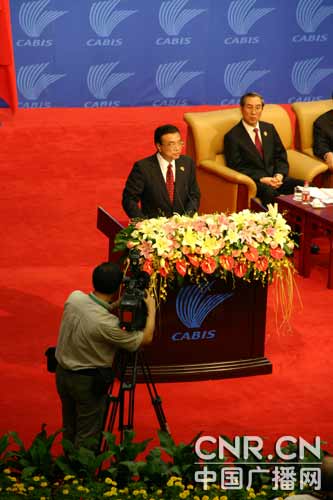 老撾總理波松演講(中廣網(wǎng)記者董雯 攝)