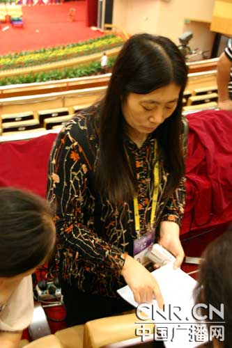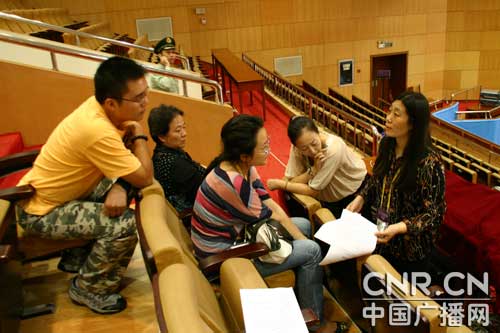 中央臺總編室孫樹鳳副主任正在現(xiàn)場部署第二天的直播工作(中廣網(wǎng)記者董雯 攝)