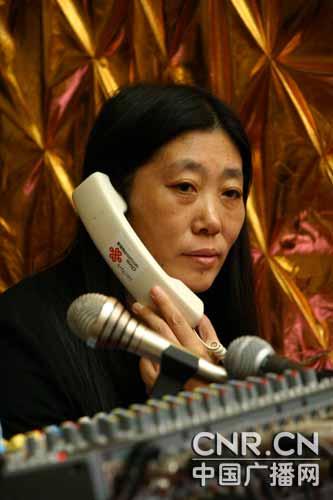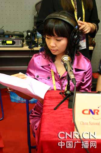 中央臺記者、主持人馮雅正在與中國之聲連線(中廣網記者董雯 攝)