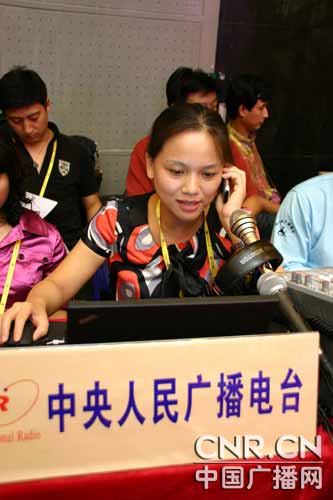 直播組負責人正在與中國之聲聯(lián)絡(中廣網記者董雯 攝)