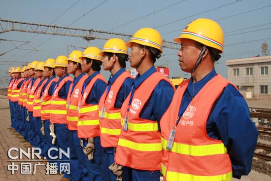 遷曹線曹妃甸南站施工路段,巨曉林和工友們列隊(duì)