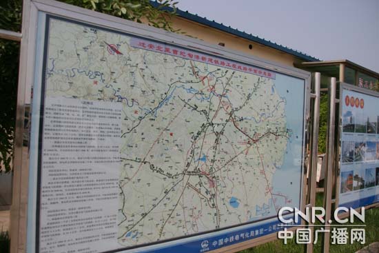 遷曹線唐海縣工班駐地上,豎立著遷曹線施工平面示意圖。(記者 曾靈華 攝)