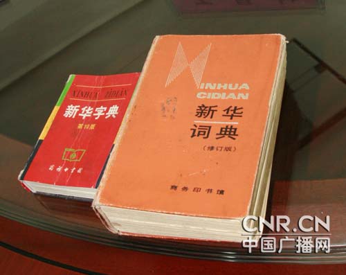 巨曉林用過(guò)的《新華字典》和《新華詞典》,被他來(lái)來(lái)回回翻過(guò)無(wú)數(shù)次。(記者 曾靈華 攝)