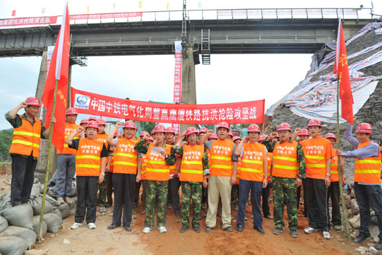 由于江西、福建省境內(nèi)普降大到暴雨,泥石流、山體滑坡突發(fā),鷹廈鐵路運(yùn)輸安全受到嚴(yán)重威脅。中國中鐵電氣化局集團(tuán)把險情當(dāng)成命令,把搶險當(dāng)成責(zé)任,在第一時間成立了搶險指揮部,從江西、福建、湖南等地迅速調(diào)集200多名搶險隊(duì)員火速奔赴一線。