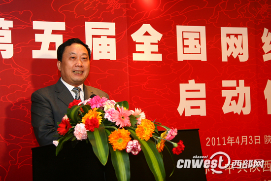 陜西省省委宣傳部網(wǎng)管辦主任劉若松主持啟動儀式。(圖片來源:西部網(wǎng))