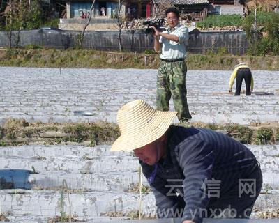 在田間地頭扛著攝像機(jī)的鄭坰靖。(圖片來源:云信網(wǎng))