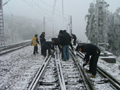 寧波市交通局財務(wù)處楊副處長帶領(lǐng)他的小分隊,冒雪站在露天廣場為過往旅客咨詢解答、指路幫扶。一個個志愿者冒雪穿梭在廣場的各個角落,披在志愿者身上的紅綢帶在漫天飛舞的雪花中跳動,顯得那么醒目。 |