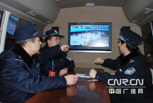 民警在指揮車內(nèi)模擬緊急狀況實戰(zhàn)