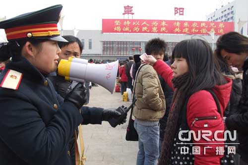 位居京九鐵路中段、華東鐵路第二通道起始點(diǎn),青阜、漯阜、商阜、阜淮、阜九五線交匯,被譽(yù)為現(xiàn)代化的“農(nóng)民車站”——阜陽(yáng)站是全國(guó)五大民工源頭輸出地之一。近年來(lái),該站春運(yùn)旅客發(fā)送量每年以10%的速度遞增,2007年春運(yùn)旅客發(fā)送人數(shù)達(dá)143.6 萬(wàn)人。預(yù)計(jì),全站今年春運(yùn)發(fā)送旅客人數(shù)逾160萬(wàn)人。