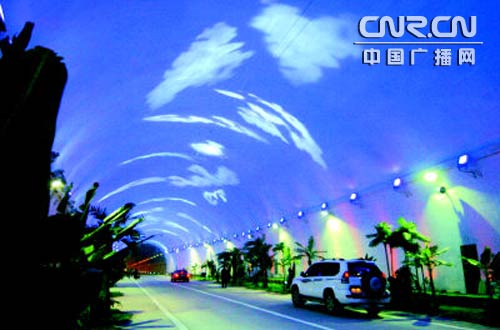 終南山隧道首創(chuàng)的“藍天白云”特殊燈光段