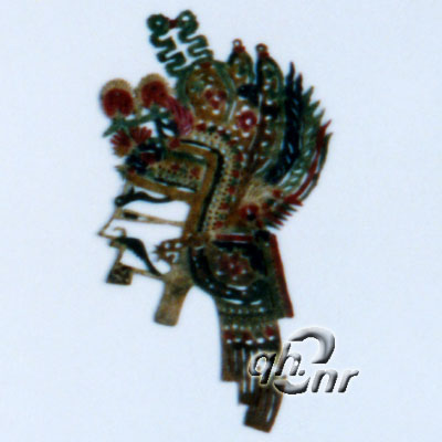 皮影是以牛皮或驢皮為材料制作而成的藝術(shù)造型,因通過燈光投影于“亮子”(白色幕布)進行表演,故也叫燈影。青海皮影由內(nèi)地傳入,在雪域高原上生存發(fā)展,形成了渾厚、質(zhì)樸、強烈、粗獷的地域風貌。根據(jù)人們的審美觀念,皮影造型強調(diào)裝飾性、概括性,形成圖案化的人物場景,圖案化的色彩渲染,充分展示平面藝術(shù)的魅力。青海燈影戲的劇目有上百種,內(nèi)容多是反映歷史故事和神話傳說的傳統(tǒng)戲,也有反映現(xiàn)實生活的現(xiàn)代戲。光、影、色三者形成了皮影雕刻藝術(shù)主要的觀賞效果要素。 |