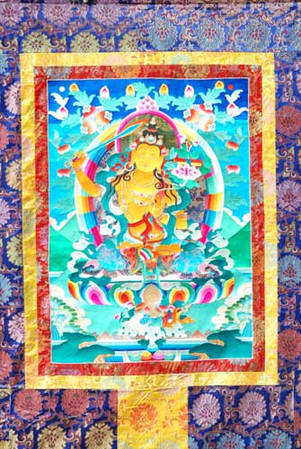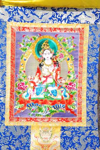 (1)繡像“國(guó)唐”:這是一種用各種不同的絲線經(jīng)手工刺繡而成的唐卡。
