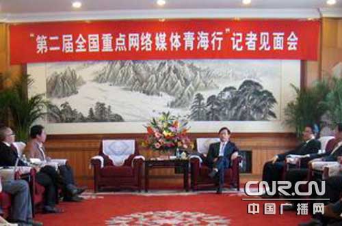 青海省委書記強衛(wèi)與第二屆全國重點網(wǎng)絡媒體青海行記者見面。(攝影:中廣網(wǎng)記者張立新)