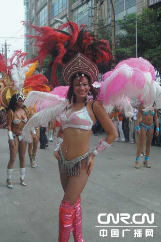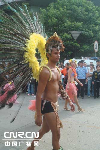 動(dòng)漫cosplay、大型時(shí)裝秀“中國(guó)元素”等都充分體現(xiàn)了“歡樂、時(shí)尚、多彩”的主題,還有岜沙火槍方隊(duì)、苗族盛裝方隊(duì)、彝族紅披氈月琴歌舞隊(duì)、布依族花傘舞隊(duì)等數(shù)百人的民族隊(duì)伍完整地展現(xiàn)了貴陽(yáng)豐富的旅游資源和優(yōu)美的人文景觀以及西部高原生態(tài)城市的特點(diǎn)、優(yōu)勢(shì)和“中國(guó)避暑之都”的獨(dú)特魅力。巴西桑巴舞、夏威夷風(fēng)情舞、非洲土風(fēng)舞、阿拉伯風(fēng)情舞、俄羅斯時(shí)尚芭蕾舞等外國(guó)巡游隊(duì)伍讓市民們領(lǐng)略到了不同的異國(guó)風(fēng)情。在“魅力飛揚(yáng)歡樂巡游”活動(dòng)上記者看到,獲得“黃果樹”杯2007多彩貴州舞蹈大賽銀瀑獎(jiǎng)得主《花棍舞》也加入到此次“魅力飛揚(yáng)歡樂大巡游”的行列。