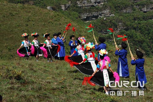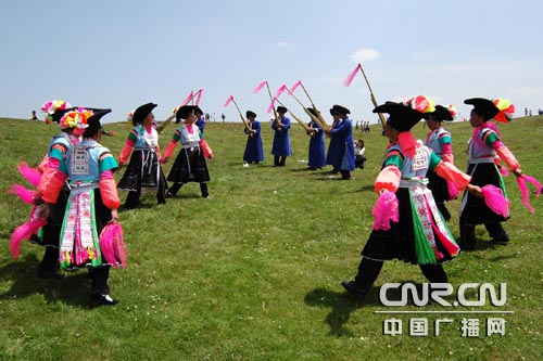 中廣網(wǎng)貴陽(yáng)5月11日消息(記者王貴山 羅勝 通訊員寧堅(jiān))5月11日,來(lái)自貴陽(yáng)、惠水、龍里等地區(qū)的苗族同胞共同歡慶"四月八節(jié)",又稱(chēng)"亞努節(jié)"。每逢節(jié)日當(dāng)天,苗族同胞都要聚集舉行活動(dòng),紀(jì)念古代英雄亞努。苗族青年唱情歌跳蘆笙舞;老人上山打獵,婦女帶著孩子去游坡,村村寨寨都沉浸在節(jié)日氣氛之中。