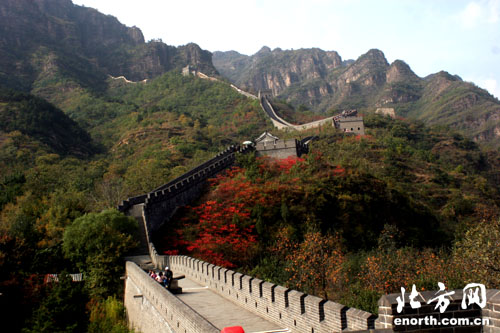 黃崖關(guān)長(zhǎng)城在薊縣北30公里的崇山峻嶺之中,始建于北齊天保年間,明代又進(jìn)行了大規(guī)模增修。特別是民族英雄戚繼光任薊州總兵期間,為長(zhǎng)城的增修做出了貢獻(xiàn)。黃崖關(guān)城是明代長(zhǎng)城的重要關(guān)隘,關(guān)城東側(cè)山崖的巖石多為黃褐色,每當(dāng)夕陽(yáng)映照,金碧輝煌,素有“晚照黃崖”之稱,關(guān)城因此得名。
