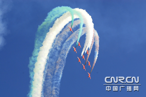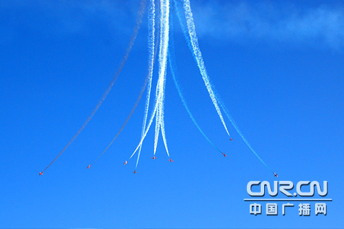 中廣網(wǎng)珠海11月8日消息 (記者梁衛(wèi)浩 溫廣為 張丹麗)昨天是珠海航展公眾日的第一天,印度“陽光”特技飛行表演隊進行了精彩表演。