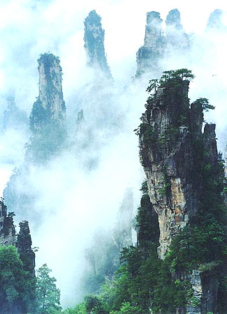 武陵源風景區(qū)位于湖南省西北部,由張家界市的張家界森林公園、慈利縣的索溪峪自然保護區(qū)和桑植縣的天子山自然保護區(qū)組合而成,總面積500平方公里。最近又發(fā)現(xiàn)楊家界新景區(qū)。武陵源風景區(qū)是80年代初“新發(fā)現(xiàn)”的“養(yǎng)在深閨人未識”的深山明珠。這里的砂巖峰林千奇百怪,似人似物,惟妙惟肖,在那靜謐的幽谷里,沒有任何人工雕鑿,有的是石柱石峰、斷崖絕壁、古樹名木、云氣煙霧、鳥鳴蟬噪、流泉飛瀑、珍禽異獸,人行其間,猶如到了一個神奇的世界和風味天成的藝術山水長廊。 |
