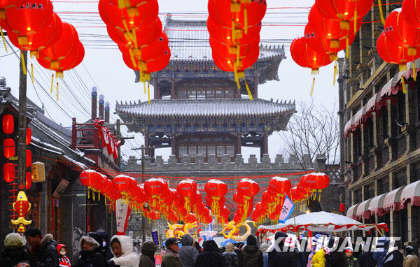 沈陽關(guān)東影視城內(nèi)熱鬧的廟會現(xiàn)場(1月11日攝)。新華社記者 任勇攝