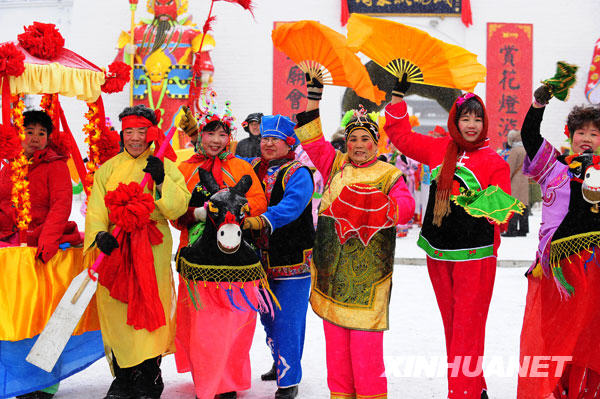 這是沈陽關(guān)東廟會上的秧歌表演(1月11日攝)。新華社記者 任勇攝