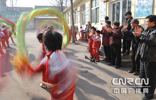 從跟隨村里的舞龍師傅學(xué)扎制龍頭、龍身,到熟練領(lǐng)會(huì)各種舞龍技巧,孩子們雖然吃了很多苦,但依然保持著很高的熱情。學(xué)校老師說,通過訓(xùn)練,舞龍隊(duì)的孩子的毅力、團(tuán)隊(duì)精神、集體榮譽(yù)感都是在學(xué)生中最強(qiáng)的,所以在學(xué)校里能成為一名“龍娃”是一件非常自豪的事情。