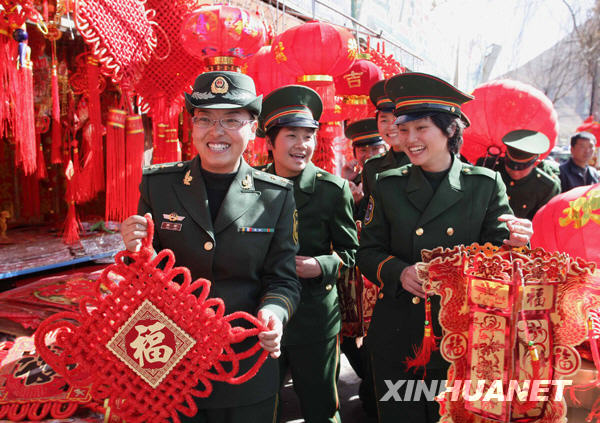 1月20日,武警西藏總隊(duì)二支隊(duì)的新兵在拉薩中和國(guó)際城花燈街選購(gòu)年貨。春節(jié)前夕,武警西藏總隊(duì)來(lái)自祖國(guó)各地的官兵在高原警營(yíng)里喜迎新春佳節(jié)。新華社發(fā)(趙艷志 攝)