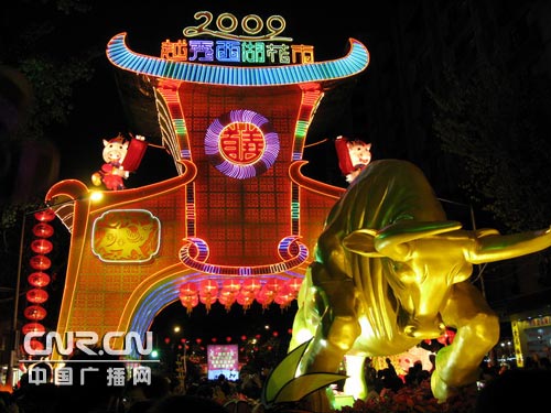 今年廣州中心區(qū)6大花市都“牛氣”十足。記者看到各區(qū)的花市牌樓都以“牛作”為主題,有的是今年牛的雕塑,有的是牛角形狀,有得是卡通牛仔,市民紛紛搶先留影,非常熱鬧。