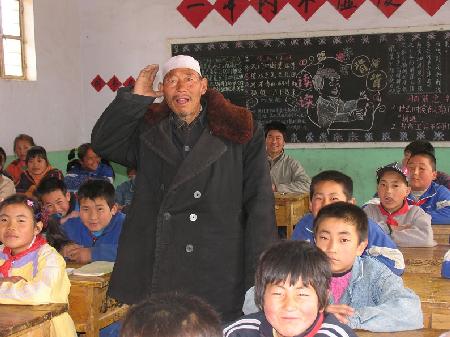 馬生林在當(dāng)?shù)貙W(xué)校里給娃娃們市繁花兒