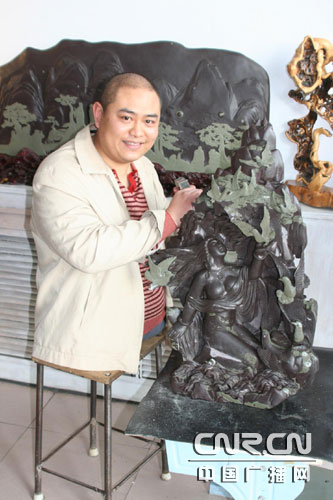 在寧夏銀川市有一位大腿根部以下全無的石雕藝人王輝,別看他是個“半身人”,但他的憑借著自己的執(zhí)著追求和堅(jiān)忍不拔的會出和努力,雕刻技藝日趨成熟,并形成了一定風(fēng)格,不僅靠手藝自食其力成家立業(yè),還在寧夏賀蘭硯雕刻界占有了一席之地。