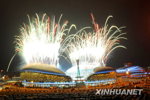 開幕式上的焰火表演。 新華社記者陳飛攝