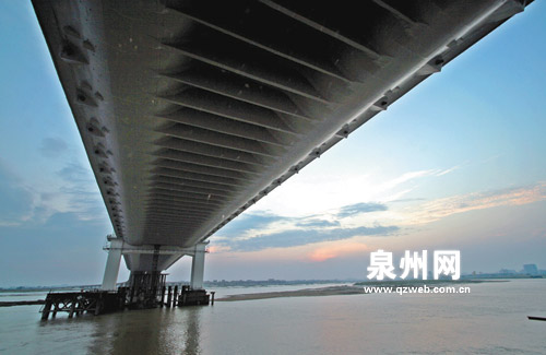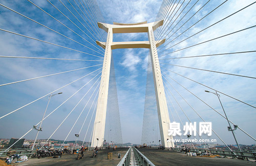 這是世界首座“開(kāi)”字型斜拉橋,科技含量高,施工難度大,建設(shè)者們攻克了一道道技術(shù)難關(guān),創(chuàng)造了六項(xiàng)全國(guó)橋梁之最。對(duì)于泉州而言,大橋的建成,不僅意味著泉州中心城區(qū)的跨越式發(fā)展,更意味著泉州在海西建設(shè)潮中催人奮進(jìn)的發(fā)展態(tài)勢(shì)。近日,記者深入大橋沿線采訪,力求用翔實(shí)的報(bào)道,描繪一個(gè)令人欣喜的未來(lái)。
