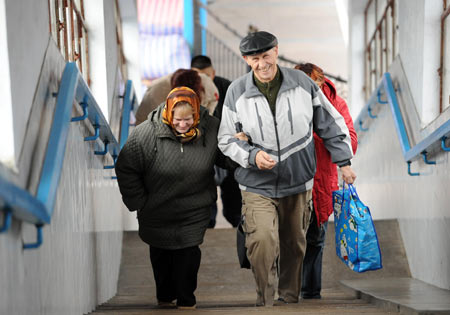 幾位乘國際列車到達的俄羅斯游客走出車站
