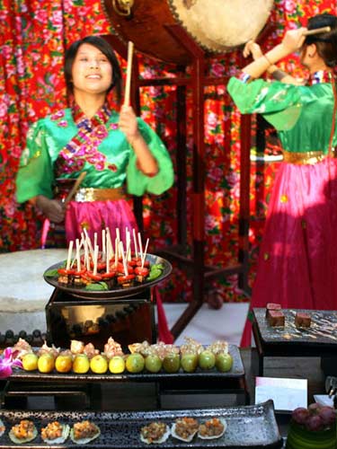 韓國(guó)大鼓敲響在北方菜展臺(tái)。
