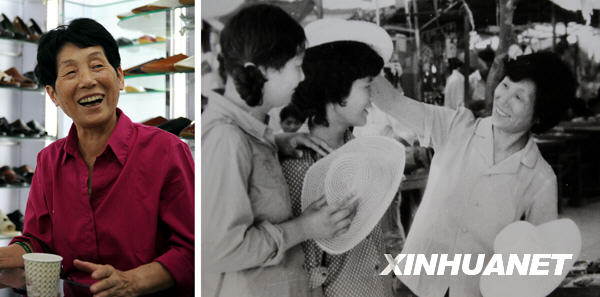 右圖:這是義烏婦女馮愛(ài)倩(右)在義烏小商品市場(chǎng)向顧客推銷遮陽(yáng)帽的資料照片(攝于上世紀(jì)80年代)。 左圖:2008年10月23日,68歲的馮愛(ài)倩在新開業(yè)的義烏國(guó)際商貿(mào)城三期一階段市場(chǎng)參觀。馮愛(ài)倩目前已經(jīng)退出商海,在老伴開辦的畫廊里安享晚年。(新華社記者張維革攝)