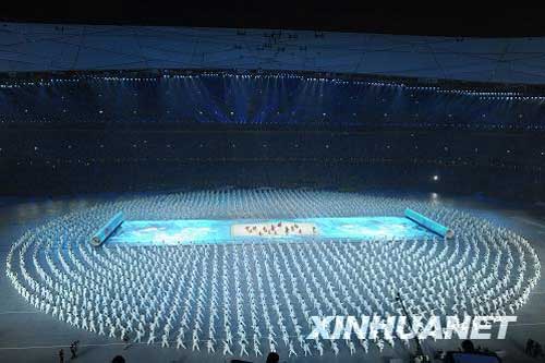 8月8日,第29屆夏季奧林匹克運(yùn)動(dòng)會(huì)在中國(guó)國(guó)家體育場(chǎng)隆重開幕。這是開幕式現(xiàn)場(chǎng)。