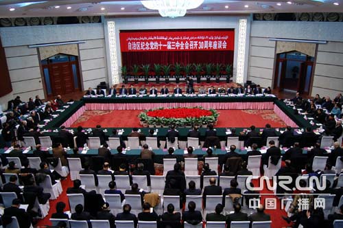 中廣網(wǎng)烏魯木齊12月25日消息(記者胡志堅 董虹)12月24日,新疆維吾爾自治區(qū)黨委在新疆人民會堂隆重舉行紀念黨的十一屆三中全會召開30周年座談會。中共中央政治局委員、新疆維吾爾自治區(qū)黨委書記王樂泉發(fā)表重要講話,回顧新疆改革開放和現(xiàn)代化建設取得的巨大成就,展望新疆改革發(fā)展的美好未來,在新的起點上繼續(xù)推進新疆改革開放向更深層次發(fā)展。