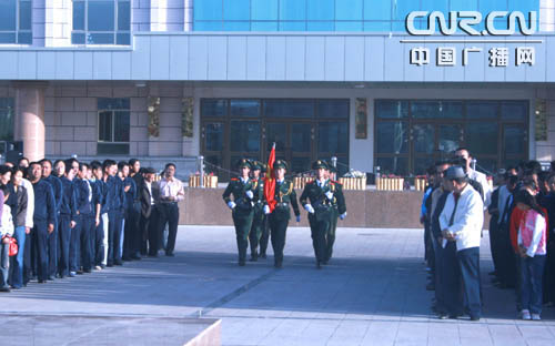 10時整,新疆庫車縣龜茲文化廣場國歌嘹亮,鮮艷的五星紅旗冉冉升起。3千多名機(jī)關(guān)干部、企事業(yè)人員、部隊官兵及中小學(xué)生參加了升國旗儀式,在中華人民共和國59年華誕之際,共祝我們偉大的祖國繁榮昌盛,國泰民安。