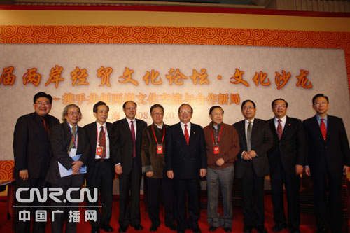中廣網(wǎng)上海12月21日消息(記者李志勇 張鵬)第四屆兩岸經(jīng)貿(mào)文化論壇·文化沙龍昨晚9點(diǎn)舉行。文化沙龍由東方衛(wèi)視主持人曹可凡和遠(yuǎn)見雜志創(chuàng)辦人高希均主持,大陸著名作家王蒙、臺(tái)灣藝術(shù)大學(xué)校長黃光男、大陸著名文化學(xué)者余秋雨、臺(tái)灣著名政論家南方朔在臺(tái)上分別從各自的領(lǐng)域和視角,就兩岸文化交流的基礎(chǔ)、領(lǐng)域、方式或前景發(fā)表見解。不過,他們不約而同地都提到了同屬兩岸的中華文化,這似乎也找到了攜手共創(chuàng)兩岸文化交流與合作新局的些許答案。