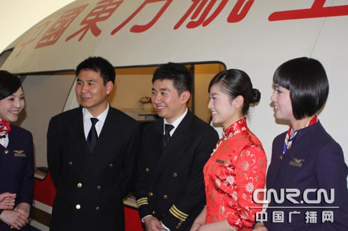 東航執(zhí)飛大陸首班兩岸常態(tài)包機(jī)機(jī)組和乘務(wù)組溝通交流