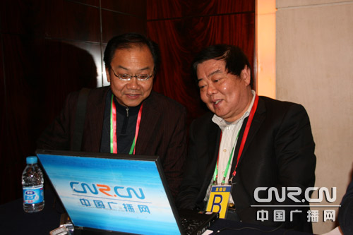 中央臺副總編王宴青和上海記者站站長陳平正在瀏覽中國廣播網(wǎng)(攝影李志勇 張鵬)