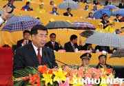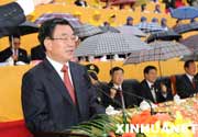 中央代表團(tuán)副團(tuán)長(zhǎng)回良玉宣讀賀電