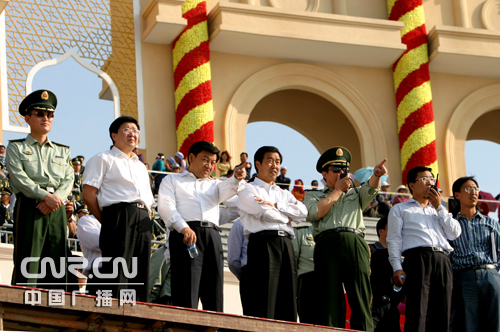 于革勝實(shí)地查看了主席臺(tái)、劇場(chǎng)設(shè)施、安全通道等,觀看了國(guó)旗護(hù)衛(wèi)隊(duì)彩排。武警寧夏總隊(duì)總隊(duì)長(zhǎng)曹建國(guó)、銀川市市長(zhǎng)王儒貴等陪同檢查。