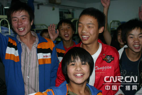 在一個(gè)男生宿舍,幾個(gè)孩子饒有興致地表演起街舞來。別看他們年紀(jì)不大,可是跳起舞來有模有樣,有的孩子還能做一些類似于“托馬斯”的高難度動(dòng)作。這些快樂的四川娃兒,跳起舞來一個(gè)比一個(gè)要強(qiáng),一個(gè)比一個(gè)喊得響。