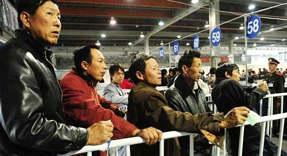 錦漢售票點(diǎn)外排隊(duì)購票的人們